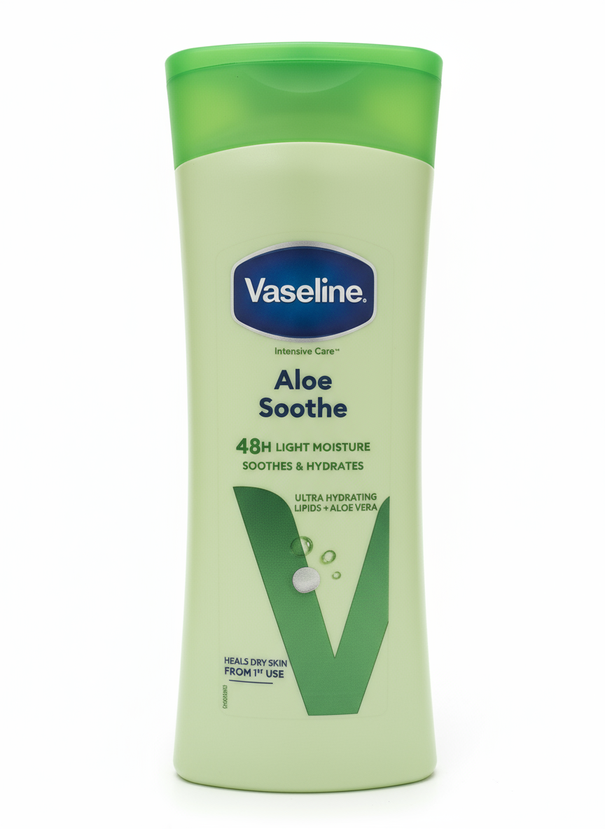 - The new Vaseline® Intensive Care™ Soothing Hydration Lotion contains 1% Aloe Vera, known to help soothe dry skin, and Ultra-Hydrating Lipids which fortify the skin barrier. Its lightweight formula helps give your skin that fresh feeling of deep hydration.