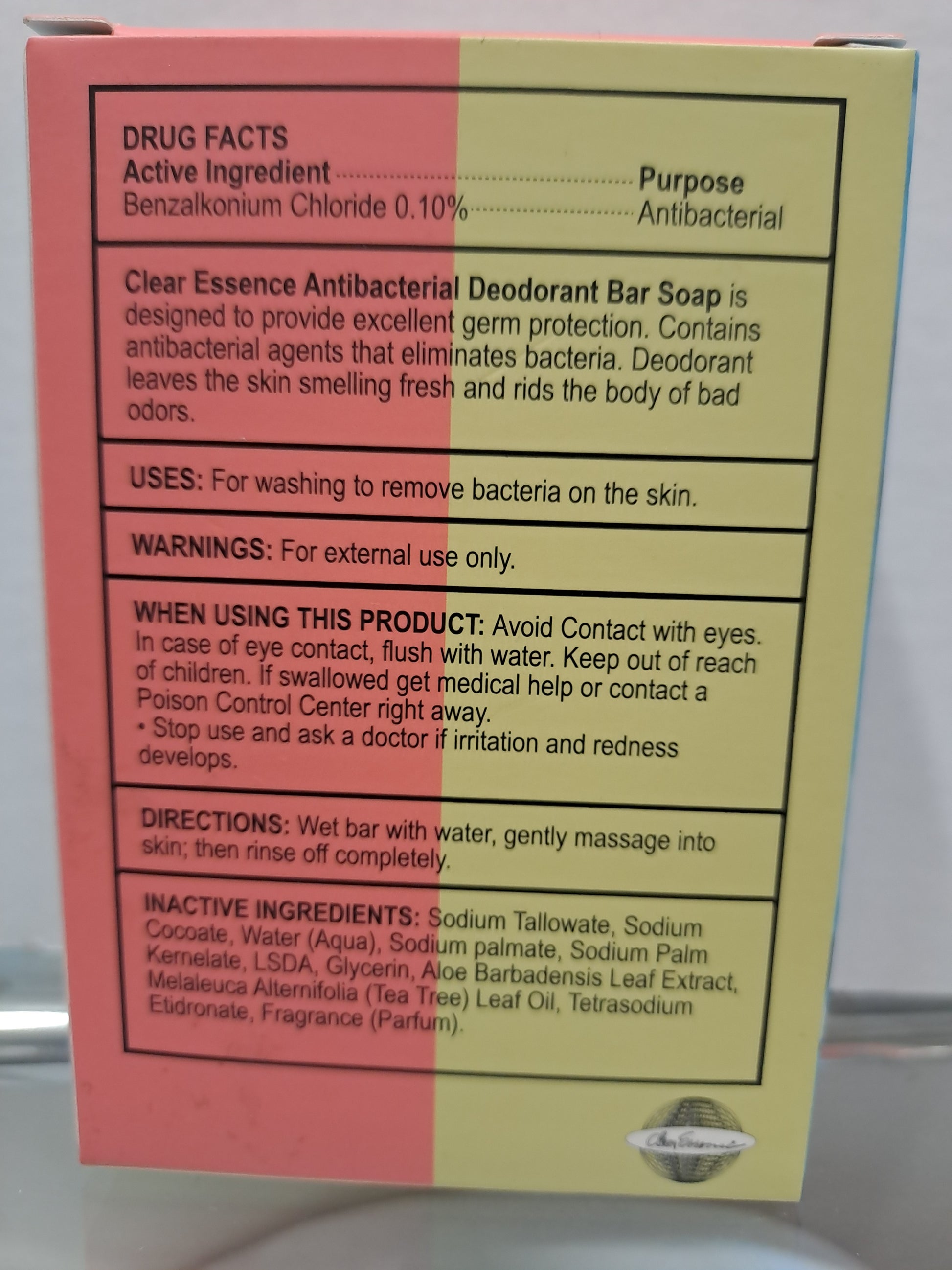 Clear Essence® Platinum Antibacterial Deodorant Bar Soap is designed to provide superior protection against germs. Contains antibacterial agents that eliminate bacteria and moisturize to improve the skin's appearance. The deodorant leaves the skin smelling fresh and rids the body of bad odors.